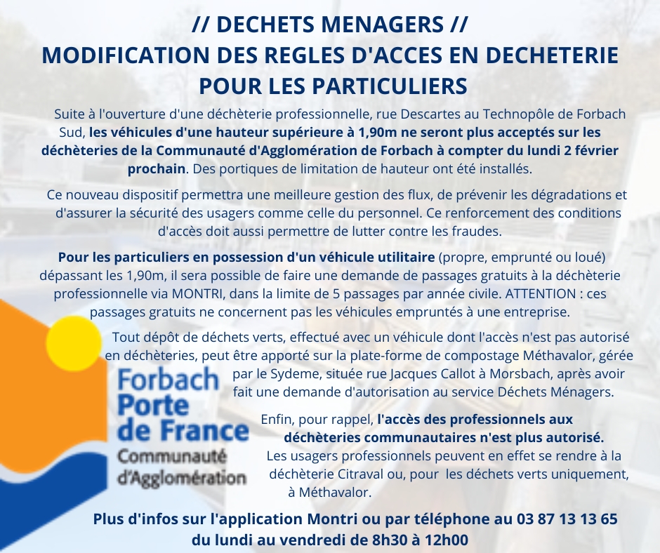 MODIFICATION DES REGLES D’ACCES EN DECHETERIE POUR LES PARTICULIERS