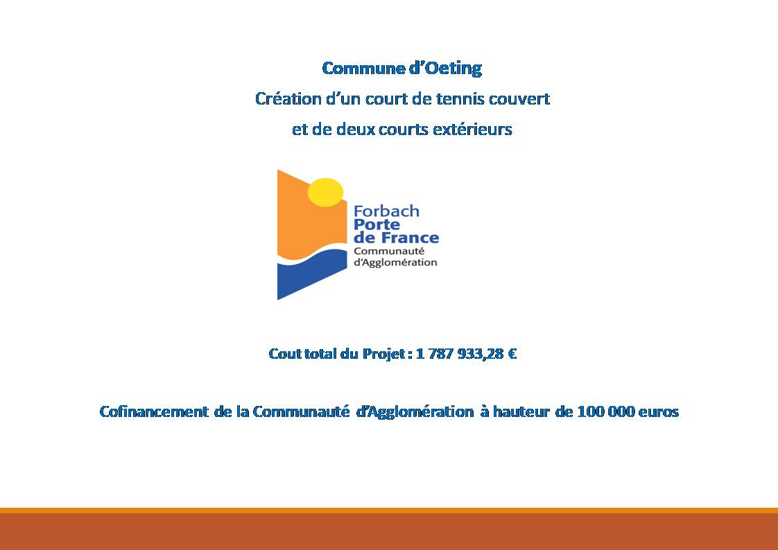 – de la Communauté d’Agglomération Forbach Porte de France  à hauteur de 100 000 euros.